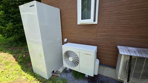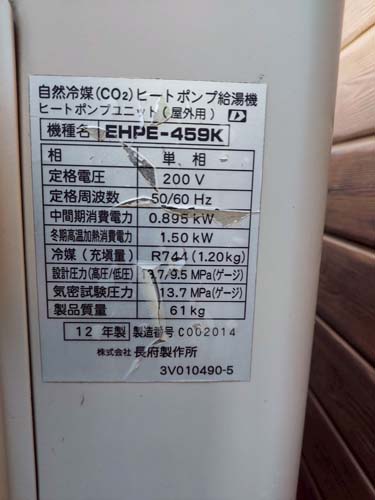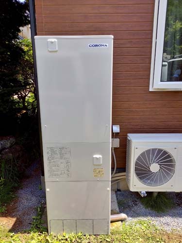 新居浜市駅前 コロナ自然冷媒CO2家庭用ヒートポンプ給湯機 ヒートポンプユニットCHP-DZ451K エコキュート交換工事
