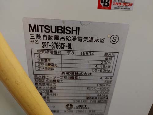 今治市中央 三菱電機自動風呂給湯電気温水器SRT-3766CF-BL→コロナ給湯器 給湯器交換工事