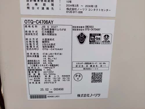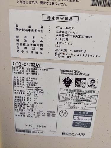 松山市本町 ノーリツ石油給湯機付ふろがまOTQ-C4703AY→ノーリツ石油給湯機付ふろがまOTQ-C4706AY 給湯器交換工事